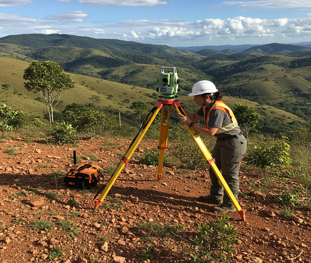A topografia auxilia no controle volumétrico, no monitoramento de pilhas de estéril, taludes e barragens de rejeito, garantindo segurança e conformidade ambiental.